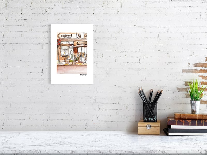 Mit Fineliner und Aquarell begab ich mich an einem warmen Vormittag zum Café Einbrand. Warmer Ziegelstein und Ziegenbock leuchteten mir an der Bonner Straße entgegen und weckten Vorfreude auf koffeeinhaltige Heißgetränke.