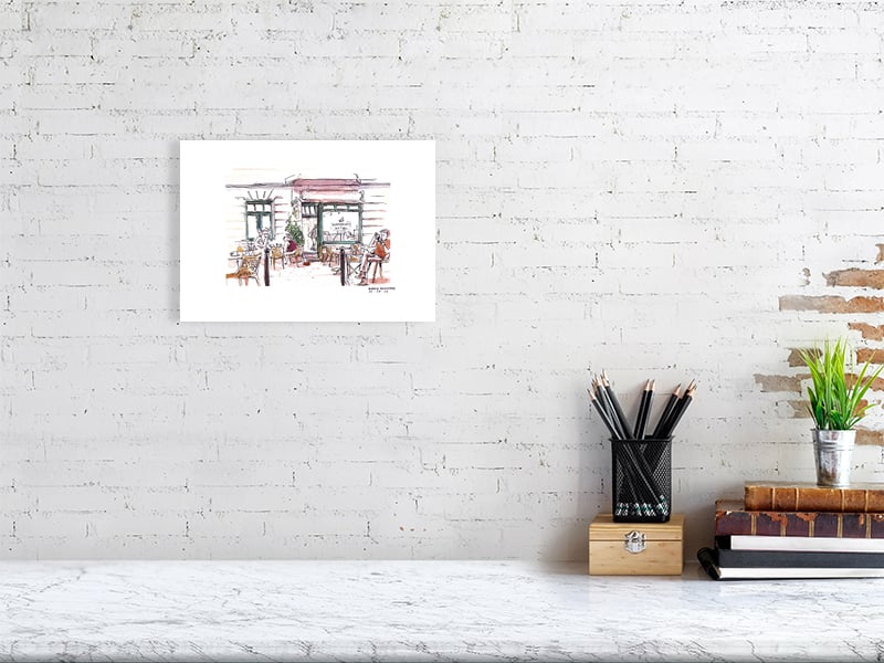 Mit Fineliner & Aquarell saß ich mich gegenüber das Café Nimmersatt. Kaum haben mich die Inhaber Isa & Moritz entdeckt verköstigten sie mich mit koffeinischen Heißgetränk und süßer Leckerei. Sonnenschein tat sein übriges zu einem wunderbaren Tag.